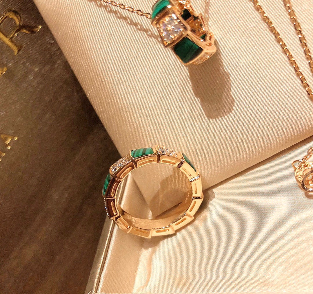 18K BV Serpenti Viper Malachite Ring