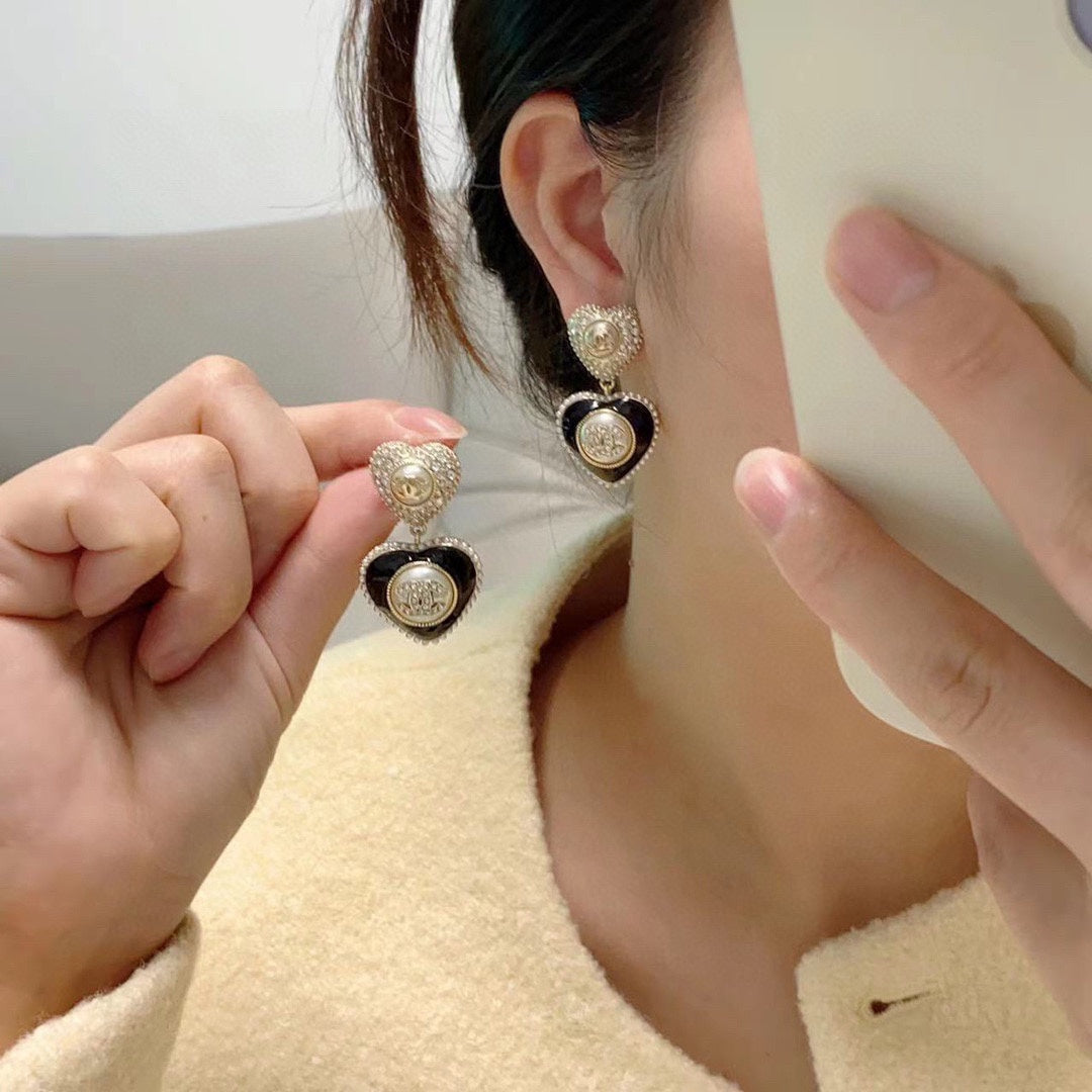 18K CC Black Heart Earrings