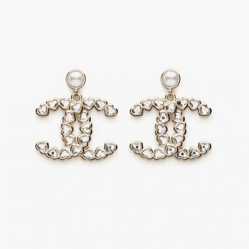 18K CC 25B Crystal Small Heart Earrings