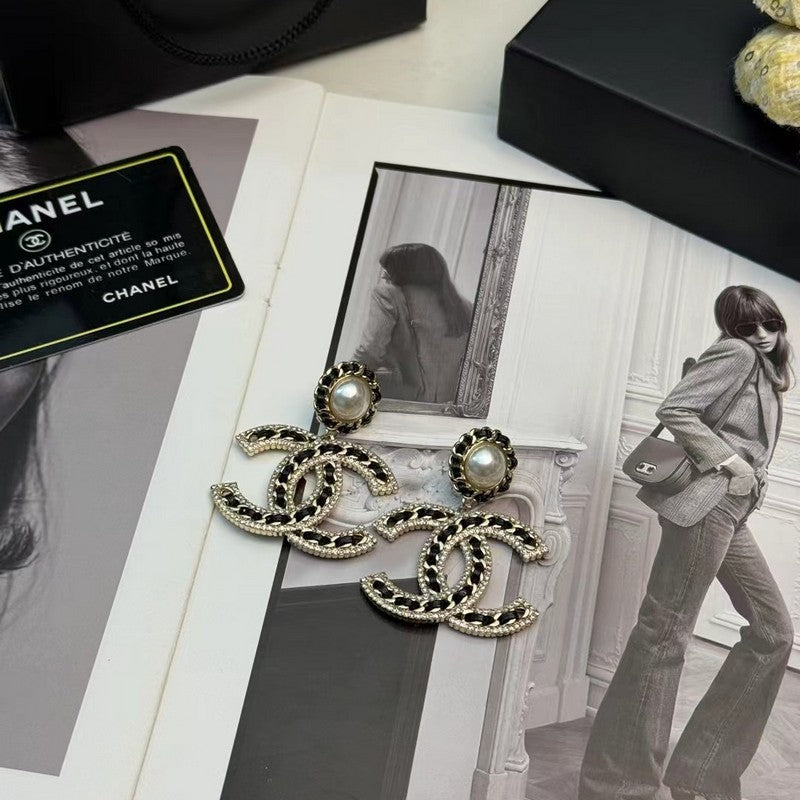 18K CC Leather Gold Earrings