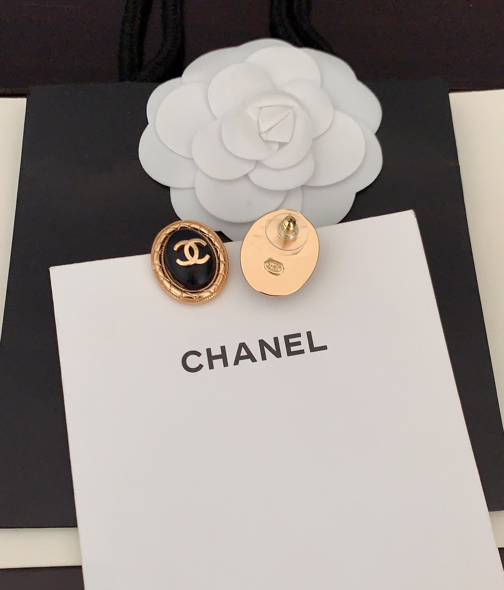18K CC Oval Leather Earrings
