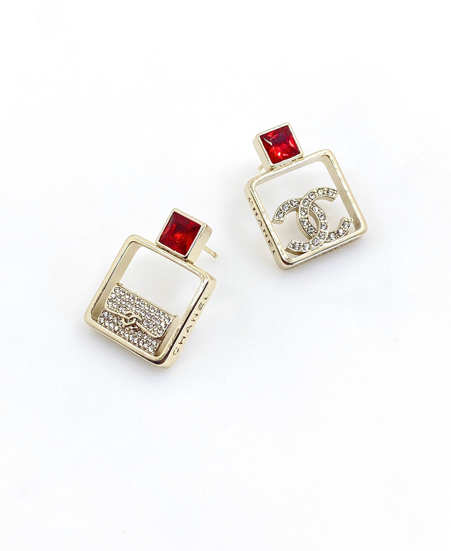 18K CC Red Bottle Pendant Earrings