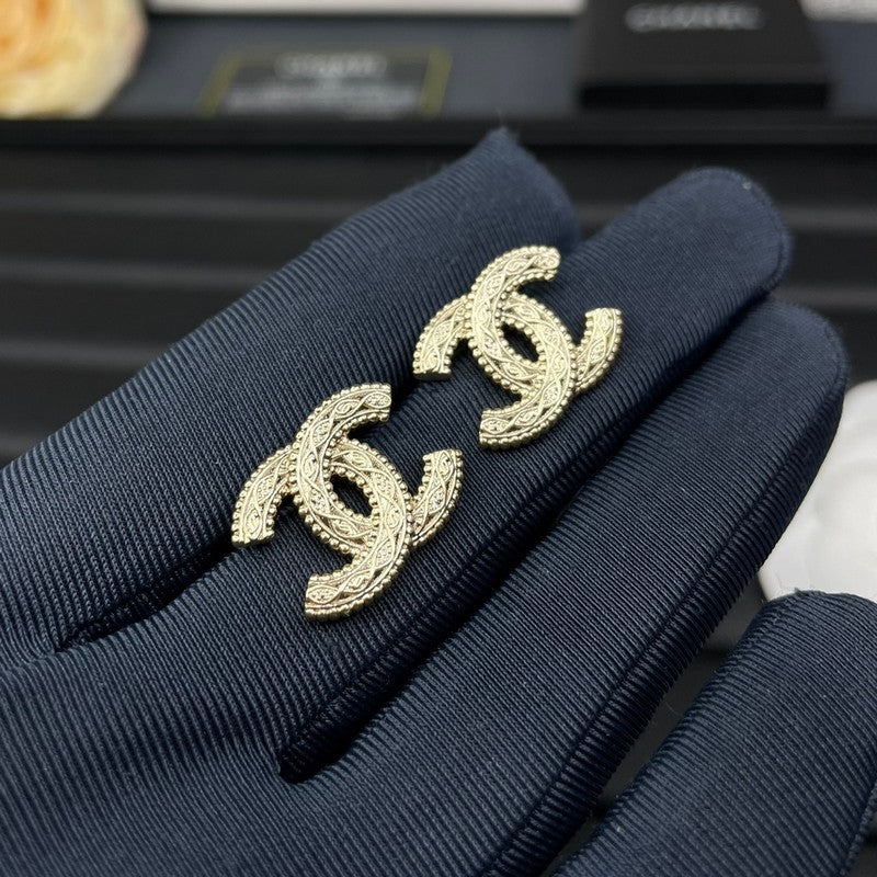 18K CC Relief Gold Earrings