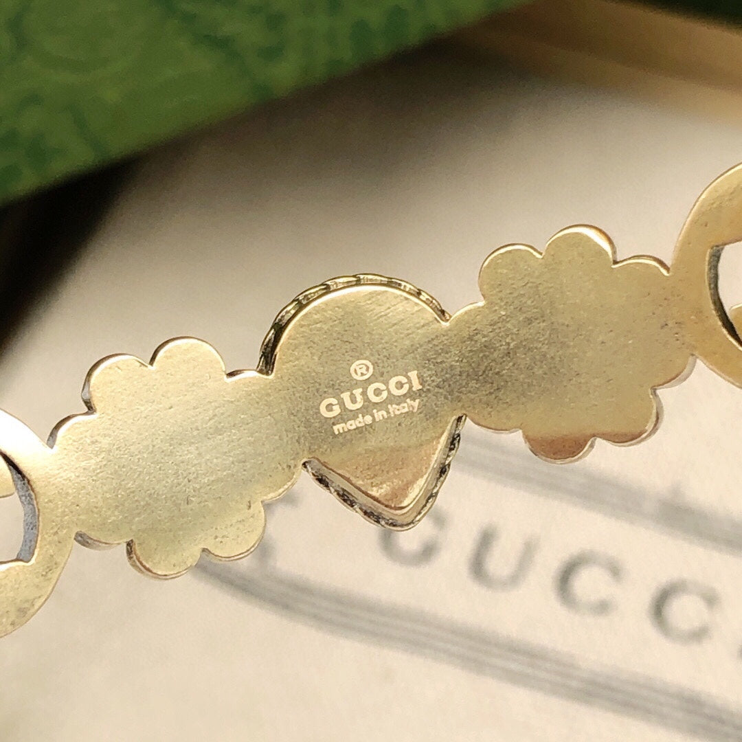 18K Double G Flowers Red Crystals Open Cuff Bracelet
