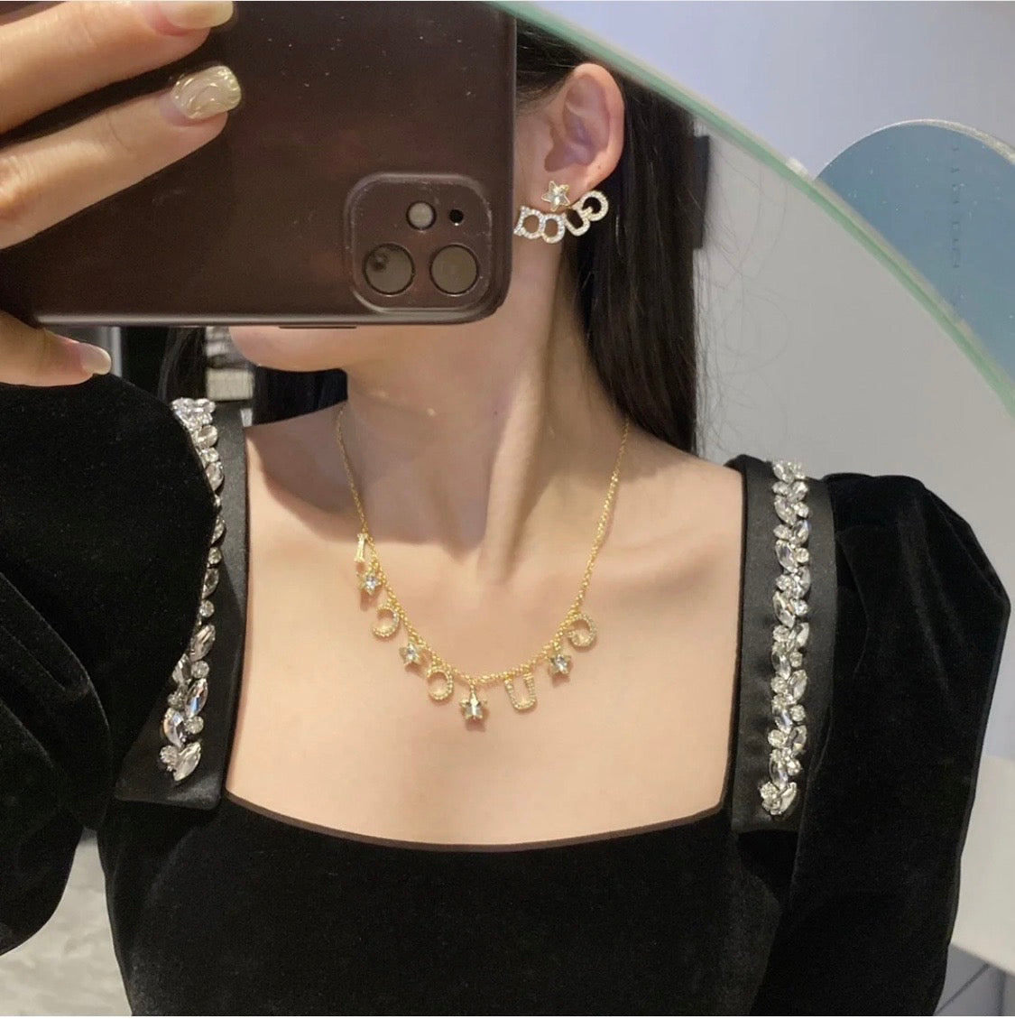 18K Double G Script Star Earrings