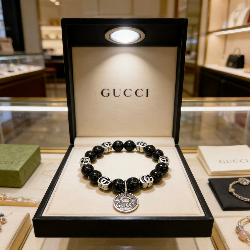 18K GG Anger Forest Black Bead Chain Bracelet