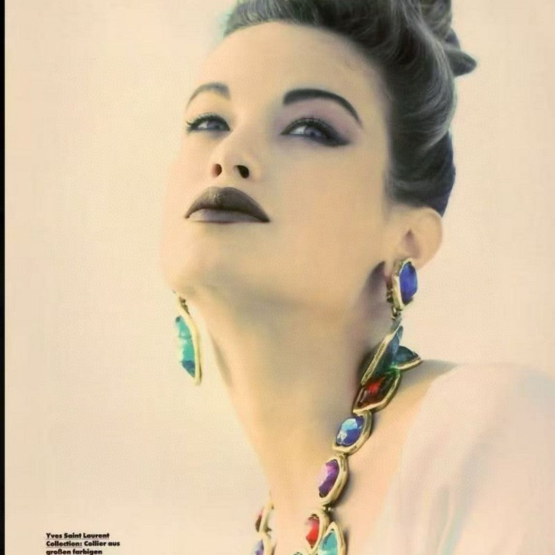 18K Saint Red & Blue Crystal Gold Earrings